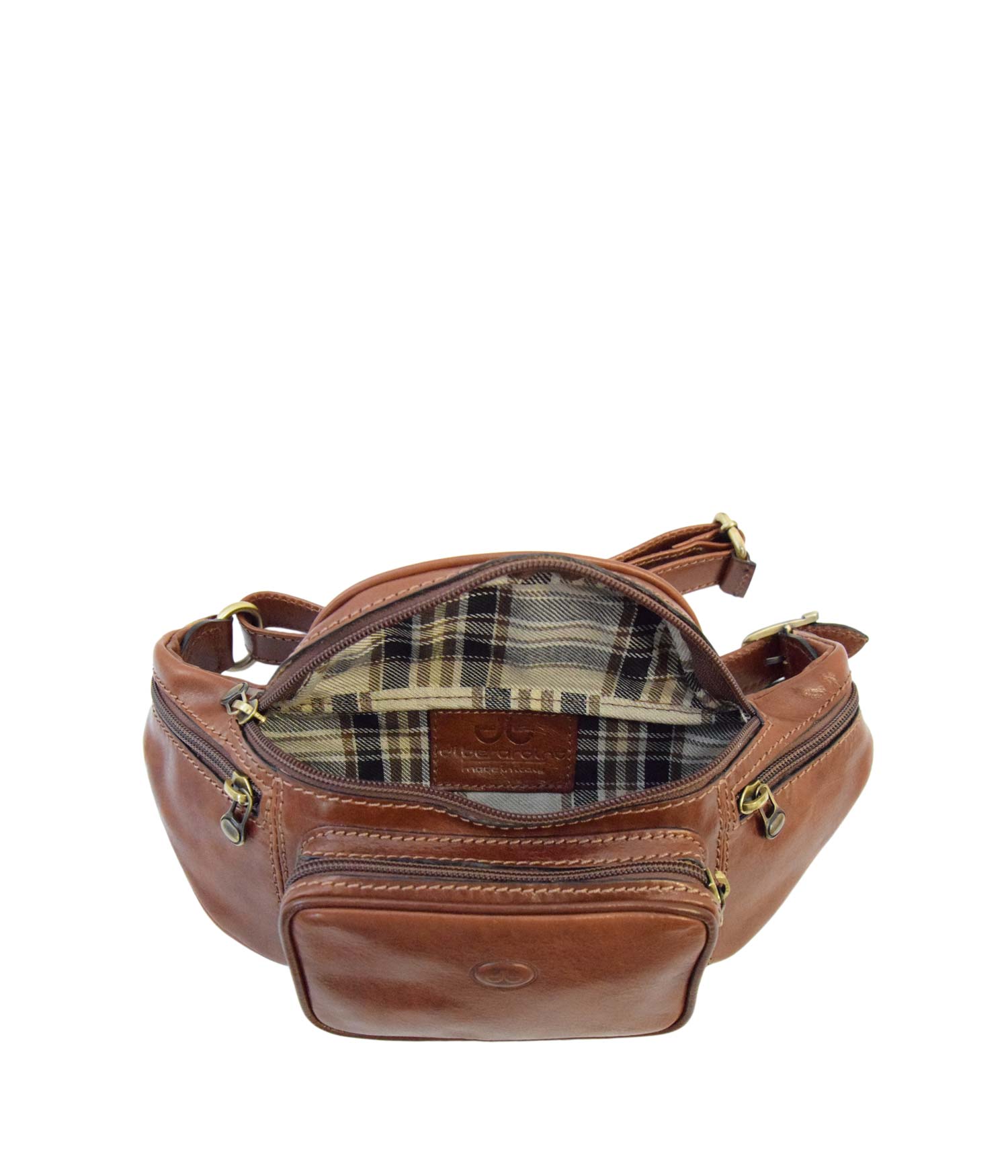 Pratico marsupio in pelle pieno fiore conciata al vegetale, con un design senza tempo, è l’ideale per la vita quotidiana e per chi viaggia.