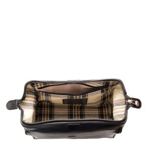 Elegante e pratico contenitore in pelle che può ospitare una grande quantità di oggetti per la cura della persona.
